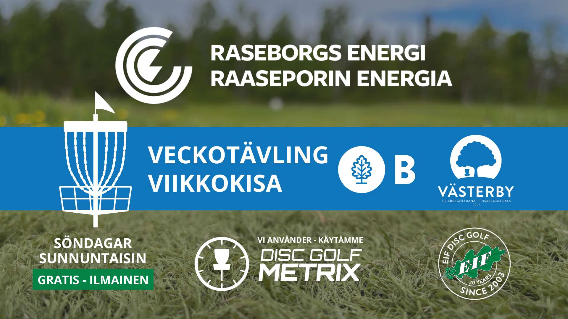 Välkommen med i EIF Disc Golfs veckotävling på Västerby Frisbeegolfbanas B-bana! Vår huvudsponsor, Raseborgs Energi, är stolt samarbetspartner till denna återkommande och kostnadsfria tävling varje söndag från april till september.